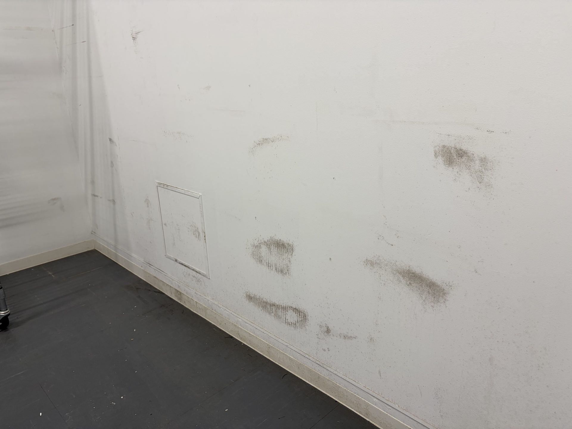地下倉庫の壁に広がる黒カビを除去!壁面全面の除菌・除カビ・防カビ施工事例