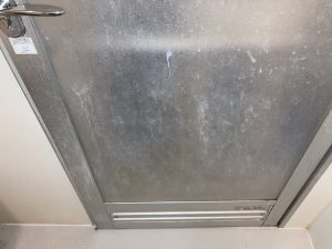 マンションの管理会社様から、退去後の浴室ドアにこびりついたウロコ汚れの除去依頼をいただきました!